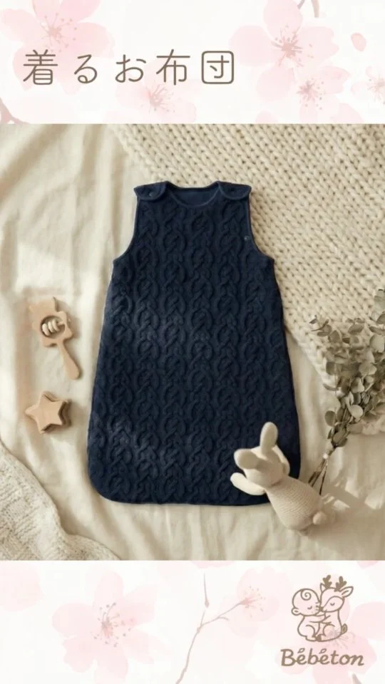 フランスのデザインと、日本の職人技が出会いました。ママと赤ちゃんを朝まで包み込む、魔法の「着るお布団」です。